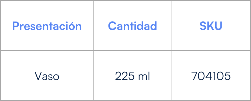Presentación de sabor naranja de dosis unitaria en vaso con suspensión lista para su uso.